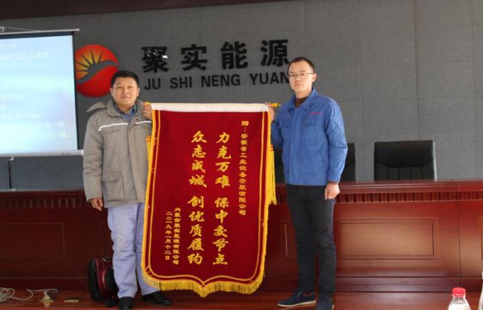 2019年1月14日,安徽安裝承建的內(nèi)蒙古聚實(shí)能源有限公司焦化升級(jí)改造生產(chǎn)清潔化學(xué)品項(xiàng)目,克服工期緊、任務(wù)重、施工難度大等諸多困難,安全、高效、優(yōu)質(zhì)的圓滿完成了工程建設(shè)任務(wù)。業(yè)主內(nèi)蒙古聚實(shí)能源公司總經(jīng)理張春軍向公司贈(zèng)送內(nèi)容為“力克萬難 保中交節(jié)點(diǎn);眾志成城 創(chuàng)優(yōu)質(zhì)履約”的錦旗。