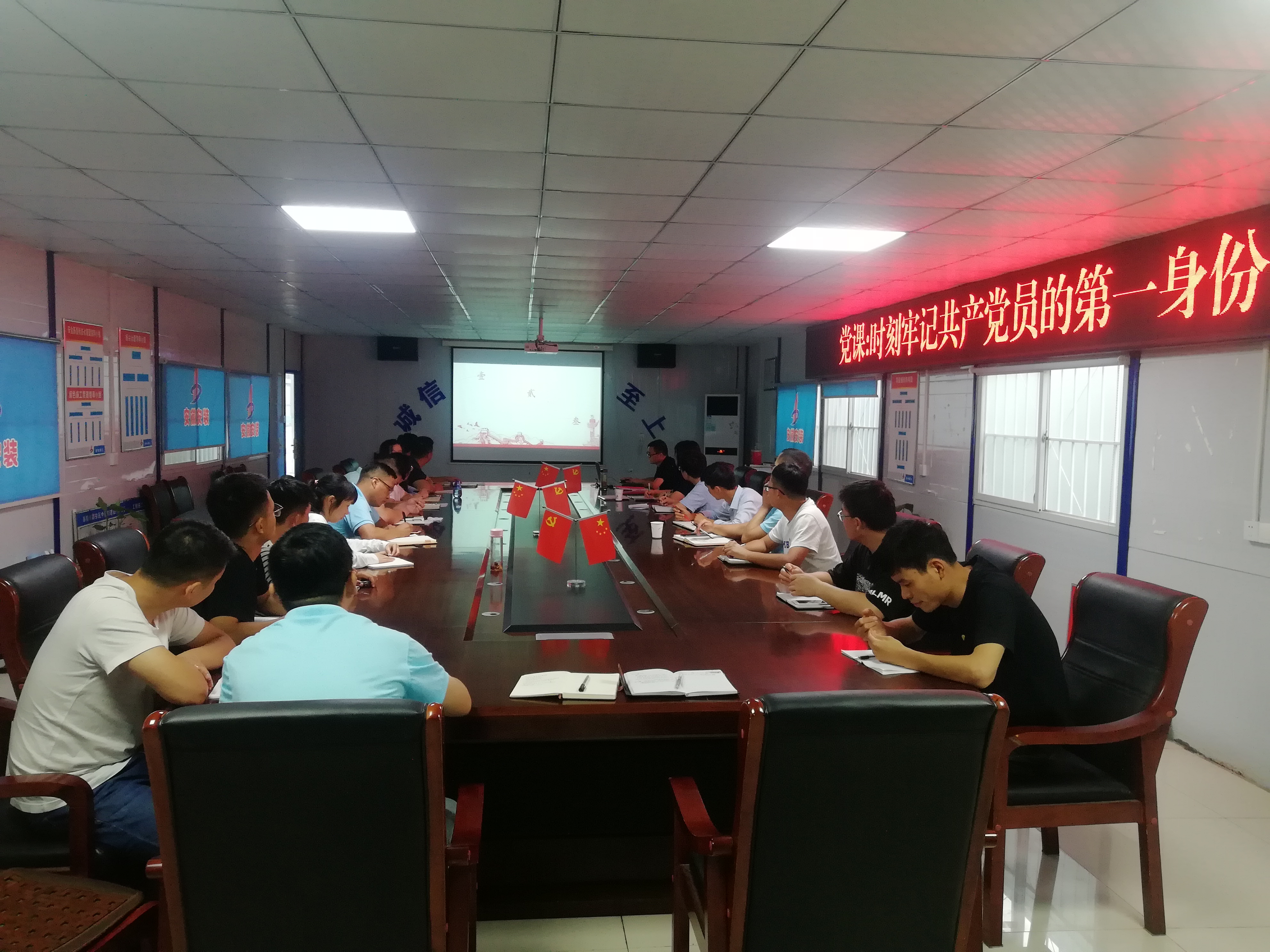 為進一步提高黨員的思想認識,強化責任擔當,加強支部黨員“第一身份”認知,切實強化共產黨員意識,7月12日下午,公司紀委書記、工會主席李寬旭赴阜陽潁東區中醫院建設PPP項目部,以《時刻牢記共產黨員的第一身份》為主題,從“不忘初心,牢記黨員身份”“干干凈凈做人,踏踏實實做事”“時刻牢記共產黨員的第一身份”這三個大的方面向與會人員講授了一節生動深刻、貼近實際的黨課。支部全體黨員干部、項目部班子成員、各部門員工30余人參加黨課學習。